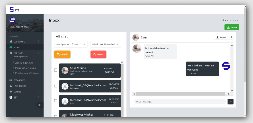 STT web arka ofisinde, tüm müşteri mesajlarınızı Gelen Kutunuzda bulacaksınız; burada mesajları inceleyebilir, yanıtlayabilir, silebilir ve gerçek müşteri verilerinizi daha fazla elde etmek için birçok başka işlem yapabilirsiniz.