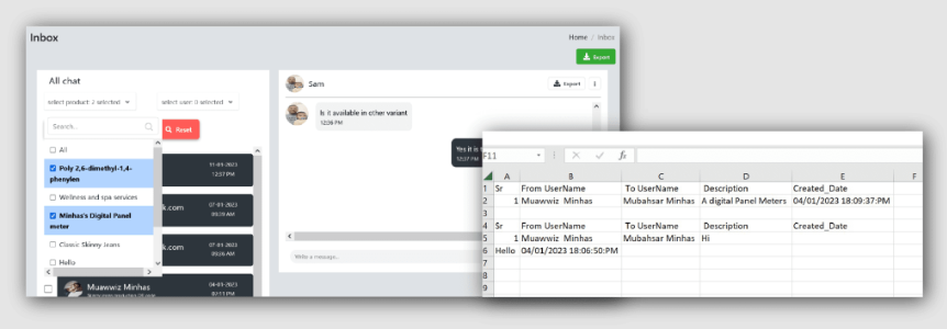 Burada, tüm müşteri mesajlarını makale/ürün ve kullanıcı bazında filtreleyebilir ve buna göre Excel’e dışa aktarabilirsiniz. Bu verileri, ürün geliştirme ve pazarlama kampanyası optimizasyonu için faydalı bilgiler elde etmek amacıyla diğer veri analitiği araçlarında kullanabilirsiniz.